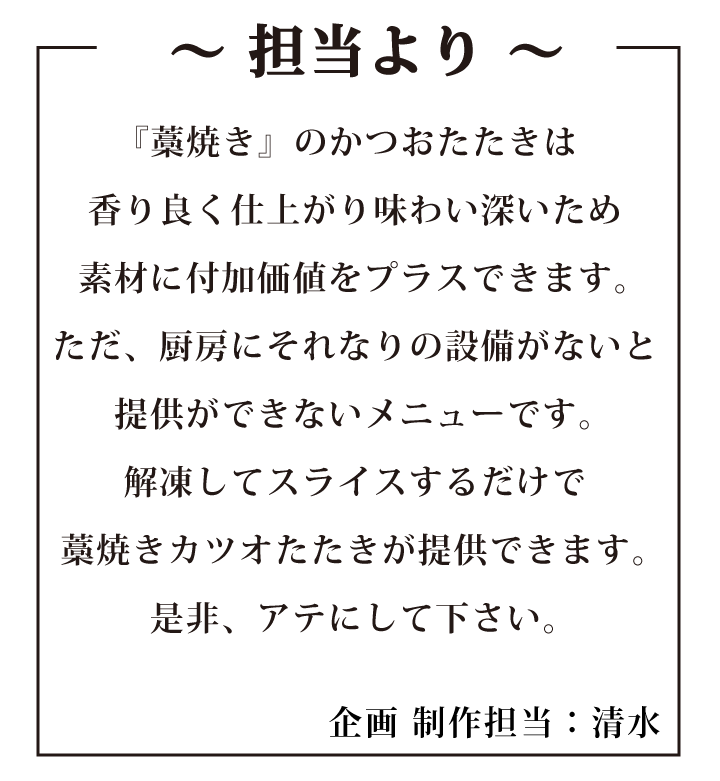 こだわりの藁焼きかつおのたたきです