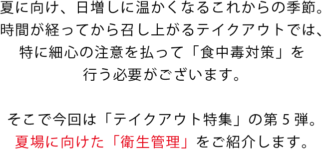 テイクアウト特集 第5弾「注意すべき衛生管理」